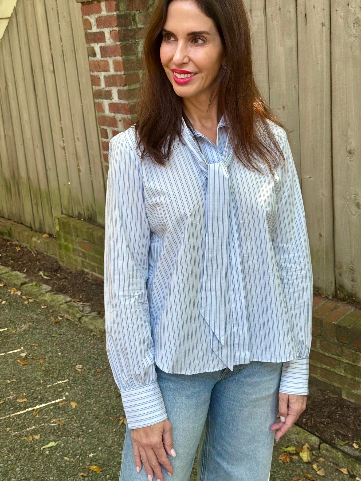 Ashlyn is workhorse, dress her up or down, wear the tie loose or tie it in a bow. Fabulous under sweaters, with skirts or trousers, you will keep coming back to her. Dreamed of in Malibu, made in California.