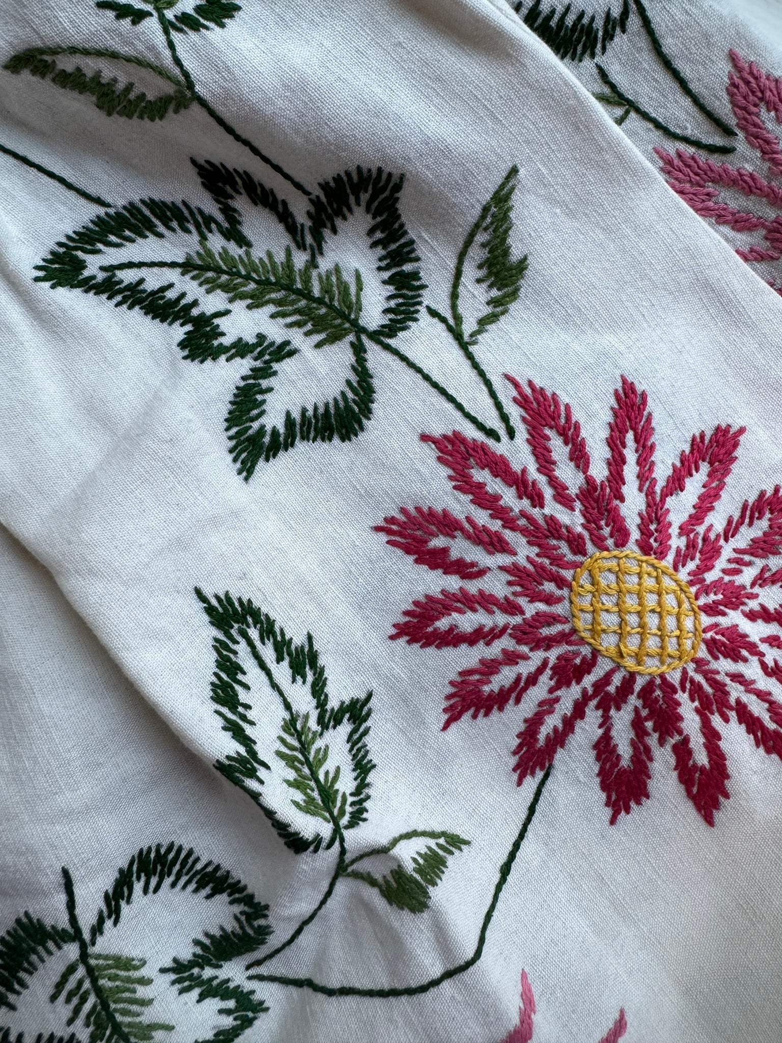 From the same small workroom in Puglia, Italy that produces our vintage linen shorts, a beautiful, easy to wear elastic waist skirt that defies seasons. Wear her with lighter bouses, or just a tee in warmer weather, then layer on your knits when the chilly weather moves in...also, fab with boots! One of a kind, unique and something special that you will never see on someone else!